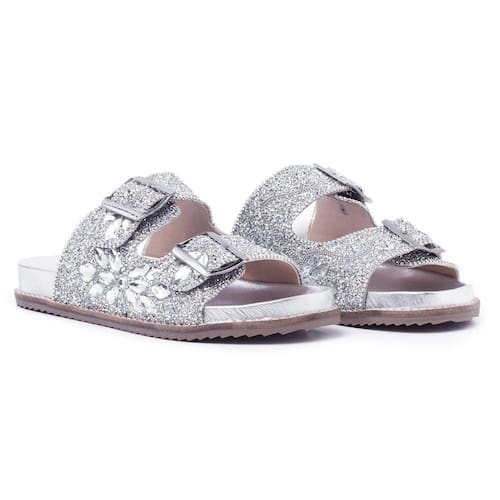 Sandália Papete Rasteira Pedrarias Fivela Ajustável Feminina Moda Fashion Passeio Sola Borracha - 36 - Prata