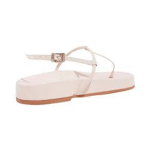 Sandália Papete confeccionada em material verniz. Possui um design com bico redondo, tiras finas, solado flatform E. Essa papete é uma escolha prática e estilosa, ideal para ocasiões informais.
