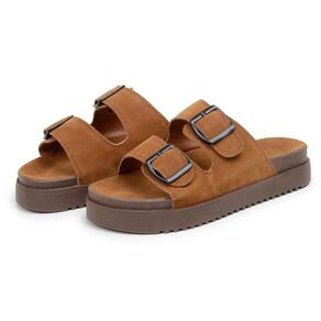 Sandalia Papete Slide Flatform Feminina Fivela Ajustavel - 37 - Marrom