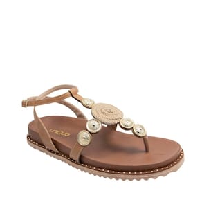 Esta sandália papete traz um design sofisticado e elegante, perfeita para os dias mais quentes. Com uma base de cor neutra e detalhes em metal dourado, ela oferece um visual moderno e refinado. O aplique central em corda confere um toque rústico e único, enquanto as tiras ajustáveis garantem conforto e segurança. A sola é robusta e resistente, proporcionando estabilidade ao caminhar. Ideal para compor looks casuais e descontraídos, essa sandália é uma escolha prática e estilosa para o verão.