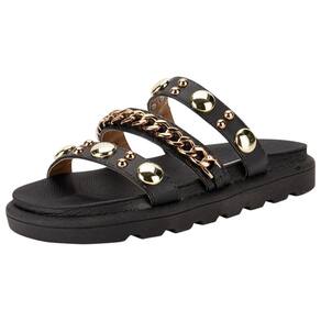 Detalhes: Material: Sintético Gênero: Feminino Tipo do Produto: Sandália Flat Estação: Primavera/Verão Tipo do Solado: Borracha Detalhe: Corrente e metalizado Tipo do Bico: Redondo Ref.:: 6510.102.7286