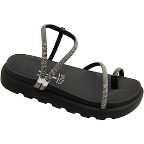 Sandália Papete Vizzano Plataforma Tira Strass Black Diamond Feminina