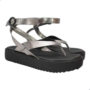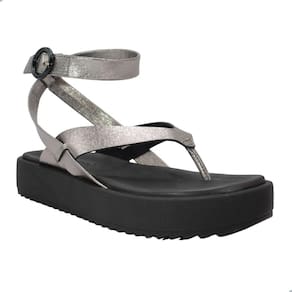 Sandália Plataforma de Dedo Moleca Preto/Prata - 38 - Grafite