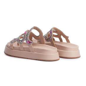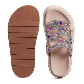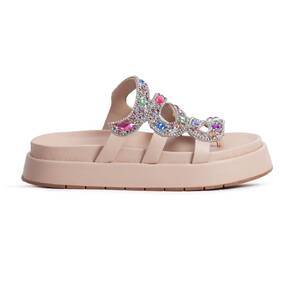 Sandália Plataforma Flat Feminina Pedrarias Chatons Moda Casual Passeio Dia a Dia Mulher Elegante - 34 - Rosa Claro