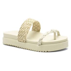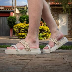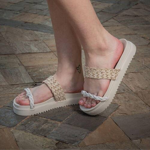 Sandália Plataforma Macia Papete Tressê Feminina com Tiras Trançadas Marfim - 37 - Bege