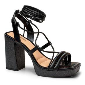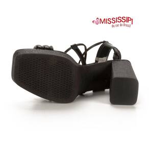 Sandália Plataforma Meia Pata Mississipi Salto Bloco Metalizada Q7631 - 38 - Preto