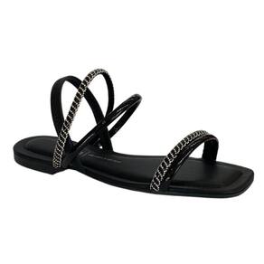 As tiras finas que envolvem os pés, com detalhes de brilhos são seu destaque, adicionando um toque de sofisticação e feminilidade. Já a sola com 1 cm de altura garante conforto e estabilidade ao caminhar, e o material sintético garante durabilidade, tornando-a ideal para o uso diário.