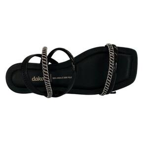 A Sandália Rasteira Dakota Feminina Preto é um calçado versátil e sofisticado. Seu design minimalista e atemporal, com tiras finas e detalhes de brilhos, a torna ideal para diversas ocasiões, enquanto o calce fácil, sem fechamentos, garante praticidade e leveza e a sola rasteira proporciona conforto ao caminhar.