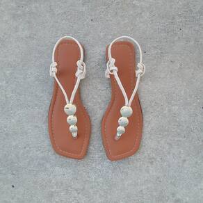 Sandália Feminina Rasteira Flat detalhe metalizado nas cores prata e bege palha são a aposta mais do que certeira para encarar a rotina com estilo! Use com t-shirt ou camisa, além de acessórios maxi. O modelo é garantia de muito conforto e praticidade. Este produto apresenta as seguintes características: Material Externo: Sintético - Material Interno: Sintético - Formato do Calçado: Quadrado - Tipo de Salto: Rasteira - Altura do Salto: Baixo - Estilo: Casual - Ocasião: Dia a Dia Forma: Normal a pequena - pegar tamanho maior que o de costume. MEDIDAS PALMILHA 34 22,8CM 35 23,5CM 36 24CM 37 25CM 38 25,5CM 39 26CM Marca: QR Shoes Marca: QR Shoes