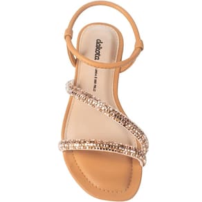 Nome: Sandália Rasteira Feminina Casual Dia a Dia Tiras com Pedraria Dakota Y6782