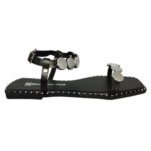 Sandália Rasteira Feminina Giovanna Dias Delicada com Detalhes Redondos Prata na Tira J565038