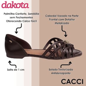 A Sandália Dakota é perfeita para quem busca elegância e conforto em um único modelo. Com design moderno e acabamento impecável, ela oferece um calce fácil, ideal para quem valoriza praticidade no dia a dia. Seu cabedal vazado na parte frontal, com detalhe metalizado delicado, traz um toque sofisticado e versátil, combinando com diferentes estilos e ocasiões.
