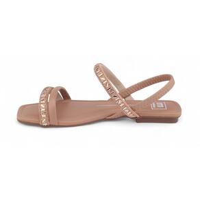 Sandália Rasteira Feminina Moleca 5462.111 com Strass CREME/CRISTAL 35