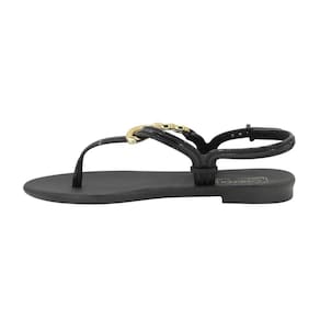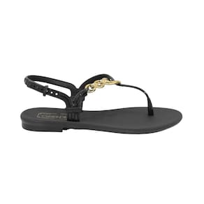 Elementos atemporais ganham novas formas nas tendências atuais. As correntes, por exemplo, são reinterpretadas com criatividade e sofisticação. Na Grendha, esse detalhe aparece em elos de diferentes tamanhos, formando uma leve assimetria que adiciona charme e elegância à sandália — perfeita para quem busca estilo com delicadeza.