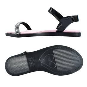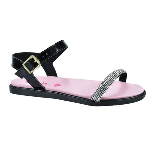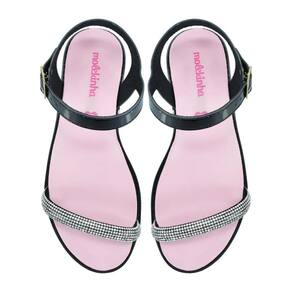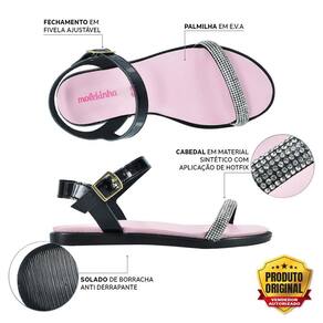 A Sandália Rasteira Molekinha 2312258 tem o cabedal com tiras revestidas de pedrarias e strass hotfix deixando o look das meninas com muito brilho e charme.