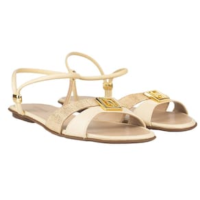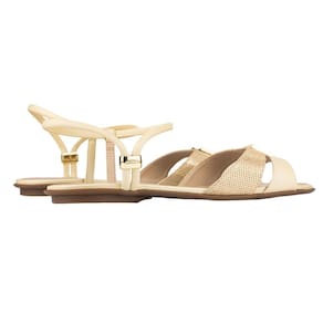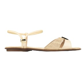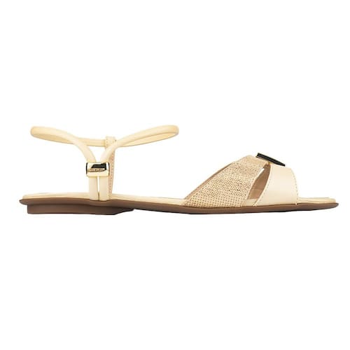 Sandália Rasteira Luz da Lua Detalhe Metal Marfim - Bege - 36