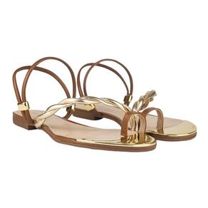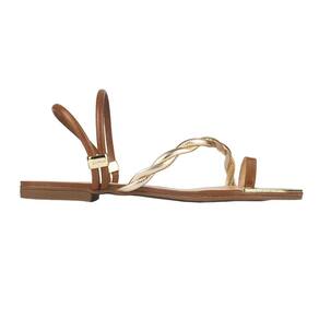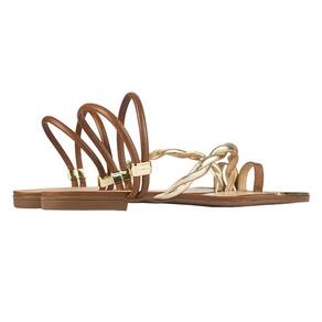 Sandália Rasteira Luz da Lua Tira Trançada Ambar - Marrom - 38