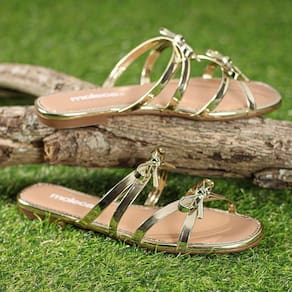 Rasteira Moleca Tiras Finas Laços Pequenos Feminina Dourada 347228Sinta o conforto em cada passo com a Rasteira Moleca Tiras Finas Laços Pequenos Feminina Dourada! Seu design moderno e os detalhes em brilho adicionam um toque de sofisticação. A palmilha macia com tecnologia de memória e o forro acolchoado garantem conforto durante todo o dia. O solado emborrachado antiderrapante oferece segurança em cada passo. Perfeita para o dia a dia, trabalho ou finais de semana, essa sandália é um coringa no seu guarda-roupa.Especificações Técnicas Indicado para: Casual Gênero: Feminino Marca: Moleca Referência: 5435548 Tipo de Bico: Redondo Cor: Dourado Fechamento: Calce fácil Material Externo: Sintético Material Interno: Sintético Material Solado: Borracha Garantia do fabricante: Contra defeitos de fabricação, após 90 dias da entrega do produto.Tabela de Medidas Moleca Indicamos sempre que você meça a palmilha de um calçado que já está usando e compare com as medidas: 33 ------- 22,0 cm 34 ------- 22,5 cm 35 ------- 23,5 cm 36 ------- 24,5 cm 37 ------- 25,0 cm 38 ------- 25,5 cm 39 ------- 26, 0 cm 40 ------- 27,0 cm