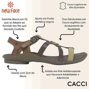 Nome: Sandalia Feminina New Face Rasteira Couro Tiras