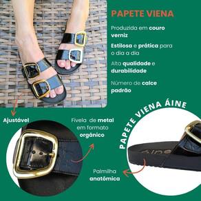 Esta Papete foi inspirada na exuberância, na delicadeza, na beleza e a sofisticação da cidade de Viena. Seu cabedal em couro verniz traz elegância e imponência aos mais diversos looks. Sua palmilha anatômica se molda aos contornos dos pés, e oferece uma sensação conforto e segurança ao caminhar. As papetes são perfeitas para serem usadas durante o dia ou para passeios em noites quentes. Podendo ser usada com vestidos e saias de qualquer comprimento, shorts, qualquer estilo de calça. Vista e se sinta empoderada com a Papete Viena!