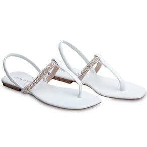 Sandália Rasteira Paula com Strass Branca 2591 - Branco - 36