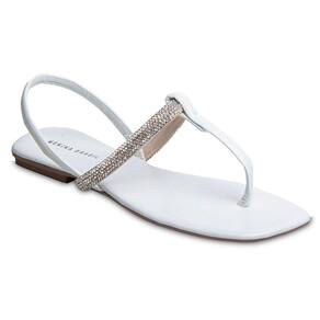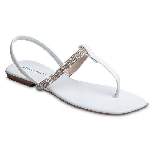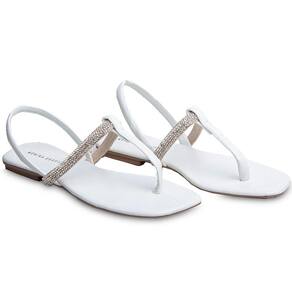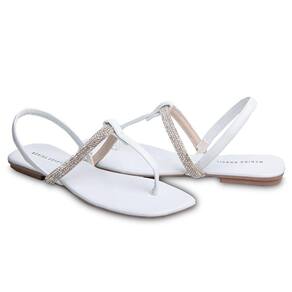 Sandália Rasteira Paula com Strass Branca 2591 - Branco - 35