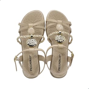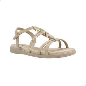 Sandália Rasteira Piccadilly Napa Brule/Ouro - 35 - Bege