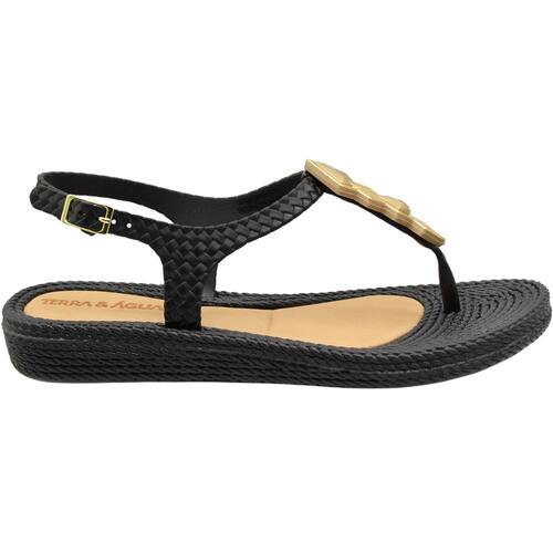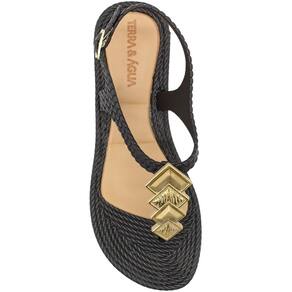 Sandália Rasteira Terra e Água Tramada Aplique Geométrico Feminino