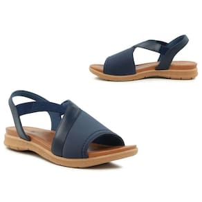 A Sandália Rasteira Usaflex Feminina Elástico Azul Marinho possui recortes em couro, e tecido com elastano na região de joanetes, que reduz a pressão e molda-se aos pés com delicadeza e maciez. Ajuste em elástico que irá facilitar o momento do calce.