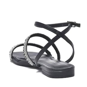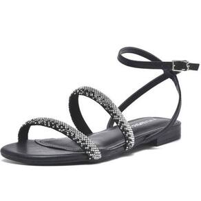 Além disso, tiras confortáveis e revestidas de Strass envolvem o peito do pé e os dedos, adicionando um toque de elegância ao calçado. Essa combinação de elementos oferece um visual único e sofisticado, tornando a sandália rasteira Via Marte uma escolha irresistível para quem busca conforto e estilo em cada passo.