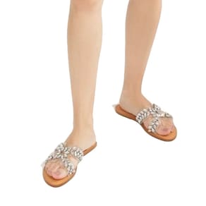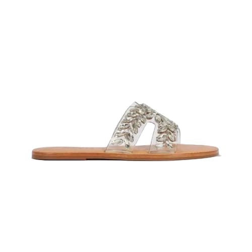 Essa sandália rasteira combina a praticidade do modelo slide com o glamour da aplicação de pedras sobre o vinil transparente, material que adiciona um toque trendy ao visual. Sabe aquele modelo fácil de usar e que faz toda a diferença no look? É essa sandália glam!