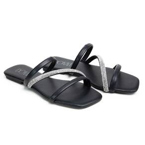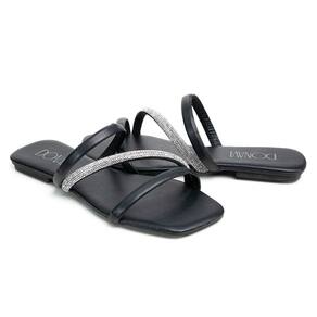 Sandália Rasteirinha Casual Feminino Tiras Brilho Moda Elegante Prática - 40 - Preto