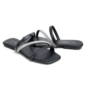 Sandália Rasteirinha Casual Feminino Tiras Brilho Moda Elegante Prática - 36 - Preto