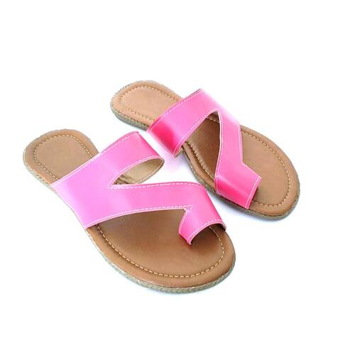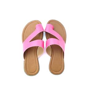 Sandália Rasteira Vazada em couro sintético, palmilha macia e solado em PVC.