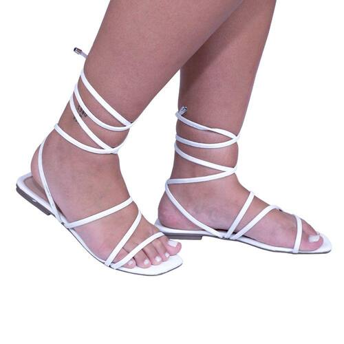 Sandália Rasteirinha de Tira e Amarração Feminina - 40 - Branco