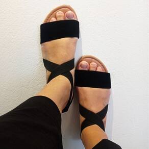 A Sandália rasteira Jucá é muito confortável, com tiras em elástico facilita calçar. Seu solado arredondado é cheio de personalidade que combina com os
