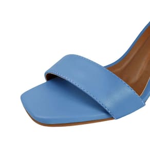 Linha de Sandália Salto Alto Grosso Luiza Sobreira, produzida em material sintético na cor Azul, com palmilha e forro em P.U., solado em TR, bico quadrado e fivela ajustável para fechamento.