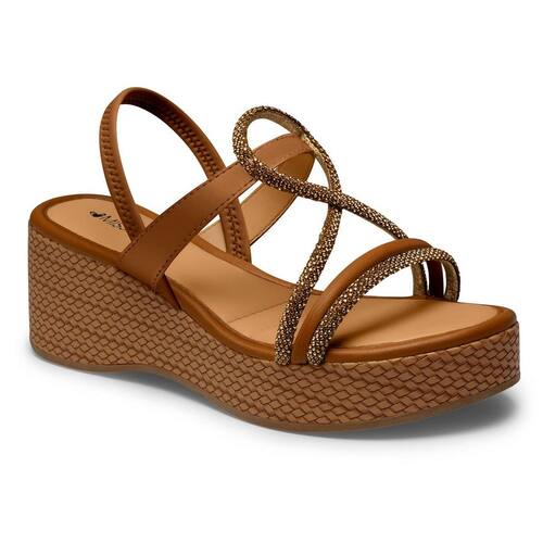 Sandália Feminina Mississipi Anabela Brilho Calce Fácil MF501