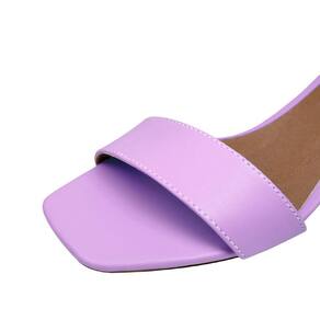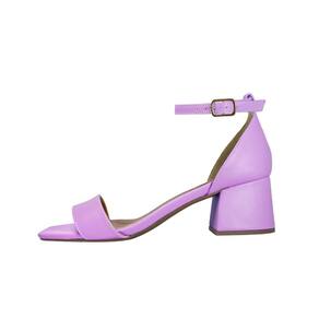 Linha de Sandália Salto Baixo Grosso Luiza Sobreira, produzida em material sintético na cor Lilás, com palmilha e forro em P.U., solado em TR.