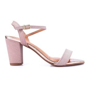 Sandalia Salto Bloco Medio Godiva Vizzano Lurex Rosa Dourado Festa