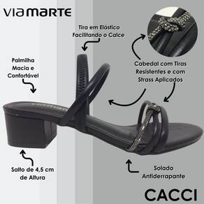 Sandália Salto Bloco Tira Strass Via Marte Casual Conforto - Preto - 34