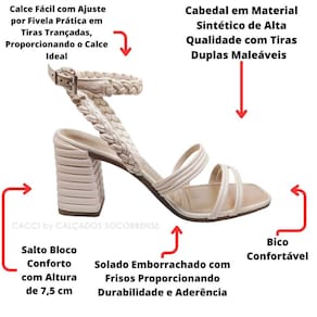 O salto bloco confere estabilidade e elegância, permitindo que você se destaque com confiança em qualquer ocasião. O conforto é a essência desta sandália, graças à sua palmilha macia e acolchoada, que garante uma experiência agradável durante todo o dia, seja no trabalho, em eventos sociais ou em um passeio descontraído.