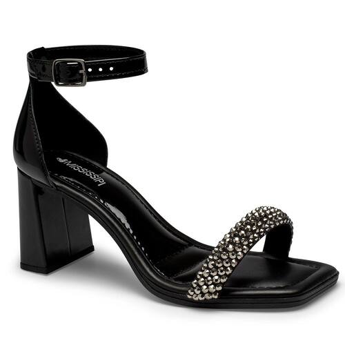 Sandália Salto Enfeite Pewter Mississipi MF393 Feminina - Preta.