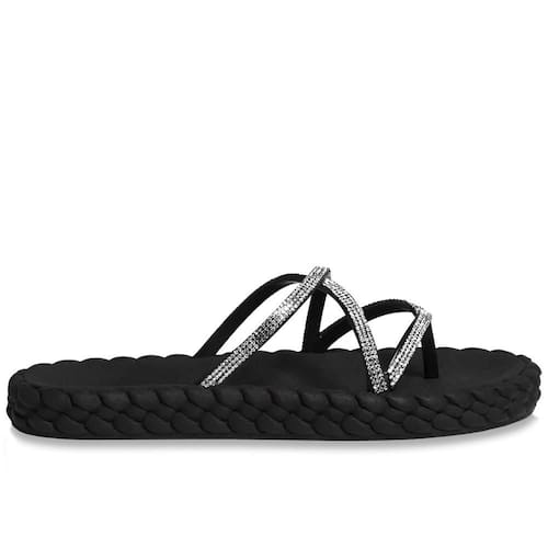 - Detalhamento: As tiras com strass adicionam um toque de estilo sofisticado, enquanto os detalhes no solado trançado conferem um charme extra à peça. O solado em borracha oferece maior aderência e conforto, tornando o calçado tanto elegante quanto funcional;