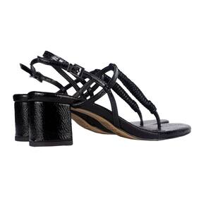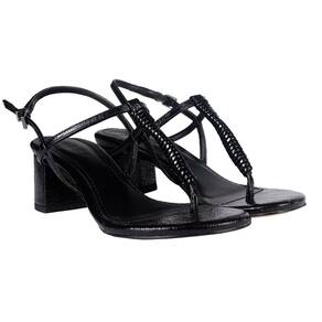 A sandália feminina confeccionada possui bico arredondado, salto bloco baixo e tira fina entre os dedos. É uma escolha versátil e estilosa para diversas ocasiões, seja para um evento formal ou para compor um look mais casual, ela combina conforto e elegância, garantindo um visual feminino e cheio de personalidade