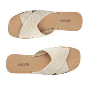 Rasteira Anacapri de tiras em gorgurão cruzadas, com logo Anacapri. O modelo flat com solado emborrachado e leve saltinho apresenta bico quadrado. Traz cabedal com duas tiras largas em fita de gorgurão texturizada, que se cruzam sobre os dedos e no peito do pé, com inscrição Anacapri. Com palmilha marrom e assinatura Anacapri. Aberta, a rasteirinha deixa os dedos e o calcanhar totalmente à mostra.