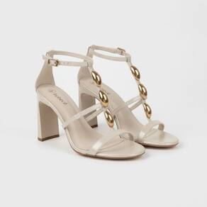 - Tiras finas com detalhes em pedrarias metálicas
