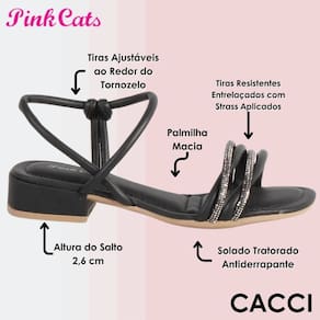 A Sandália Pink Cats Infantil de Salto combina beleza e conforto. Seu design se destaca pela superfície formada por tiras finas e macias que não possuem fechamentos, fácil de calçar e ajustar aos pés. O charme deste modelo é a tira com brilhos na parte frontal, que acrescenta um toque sofisticado e glamouroso ao calçado, perfeito para elegância especial ou para dar um toque de elegância ao visual cotidiano das meninas. Fabricada com material sintético de alta qualidade, esta sandália é leve e resistente, tornando-a uma opção prática e durável. O salto baixo de 2,6 cm proporciona a altura ideal para conforto durante todo o dia. A sandália Pink Cats é indicada para o dia a dia e momentos de lazer. Seja para eventos especiais, festas ou simplesmente para complementar um look charmoso, esta sandália é a escolha certa para que as pequenas se sintam elegantes e confortáveis.