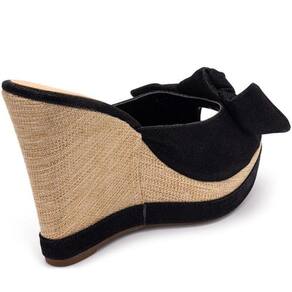 Sandália Tamanco Anabela Com Laço e Sola Borracha Leve - 38 - Preto