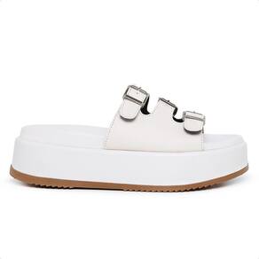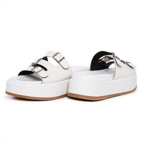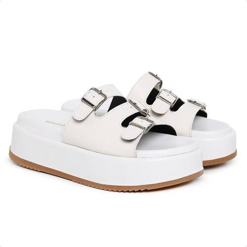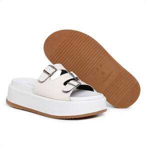 Sandália Tamanco Feminina Com Tiras Fivela Moderna - 40 - Bege Claro